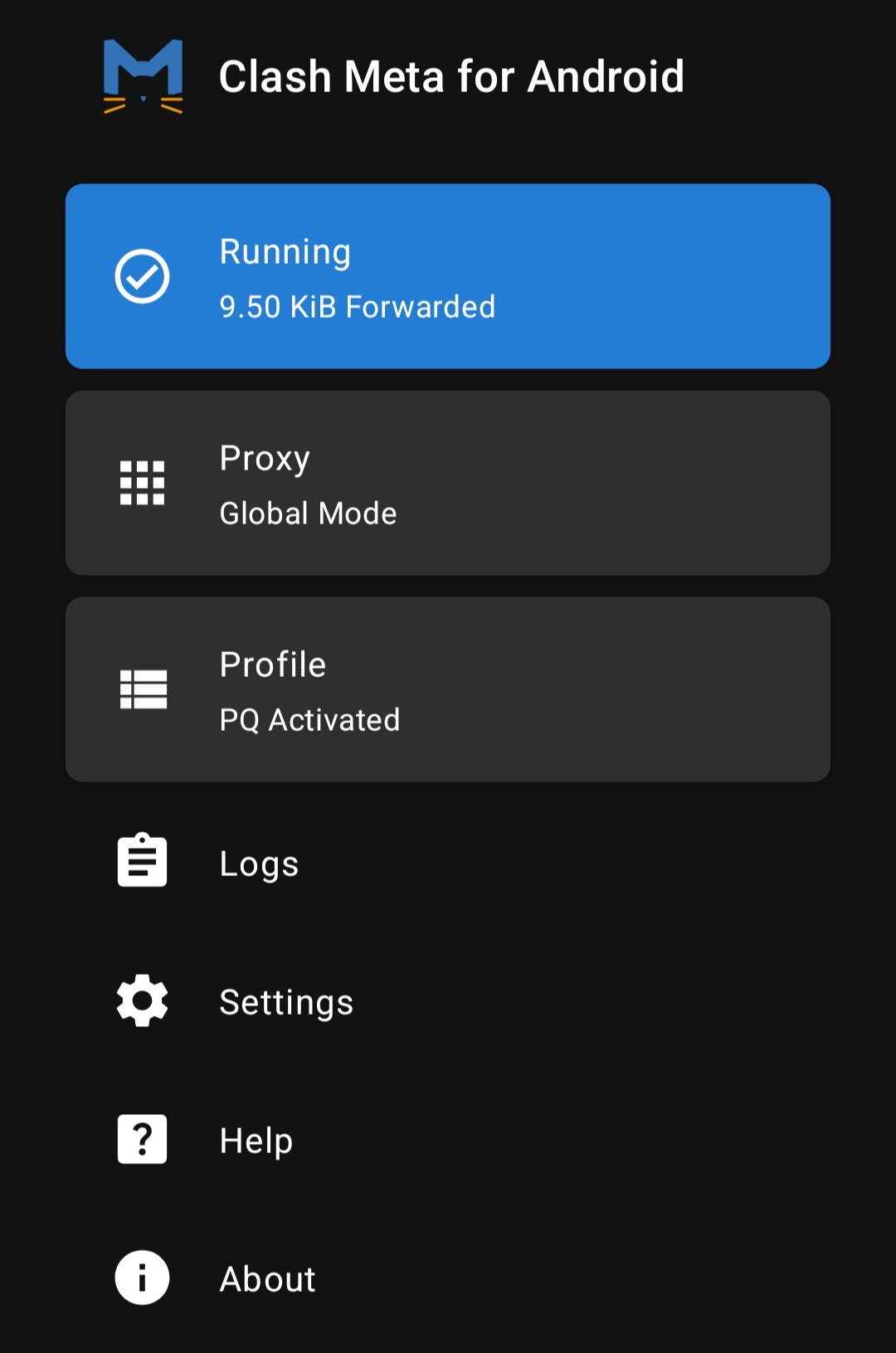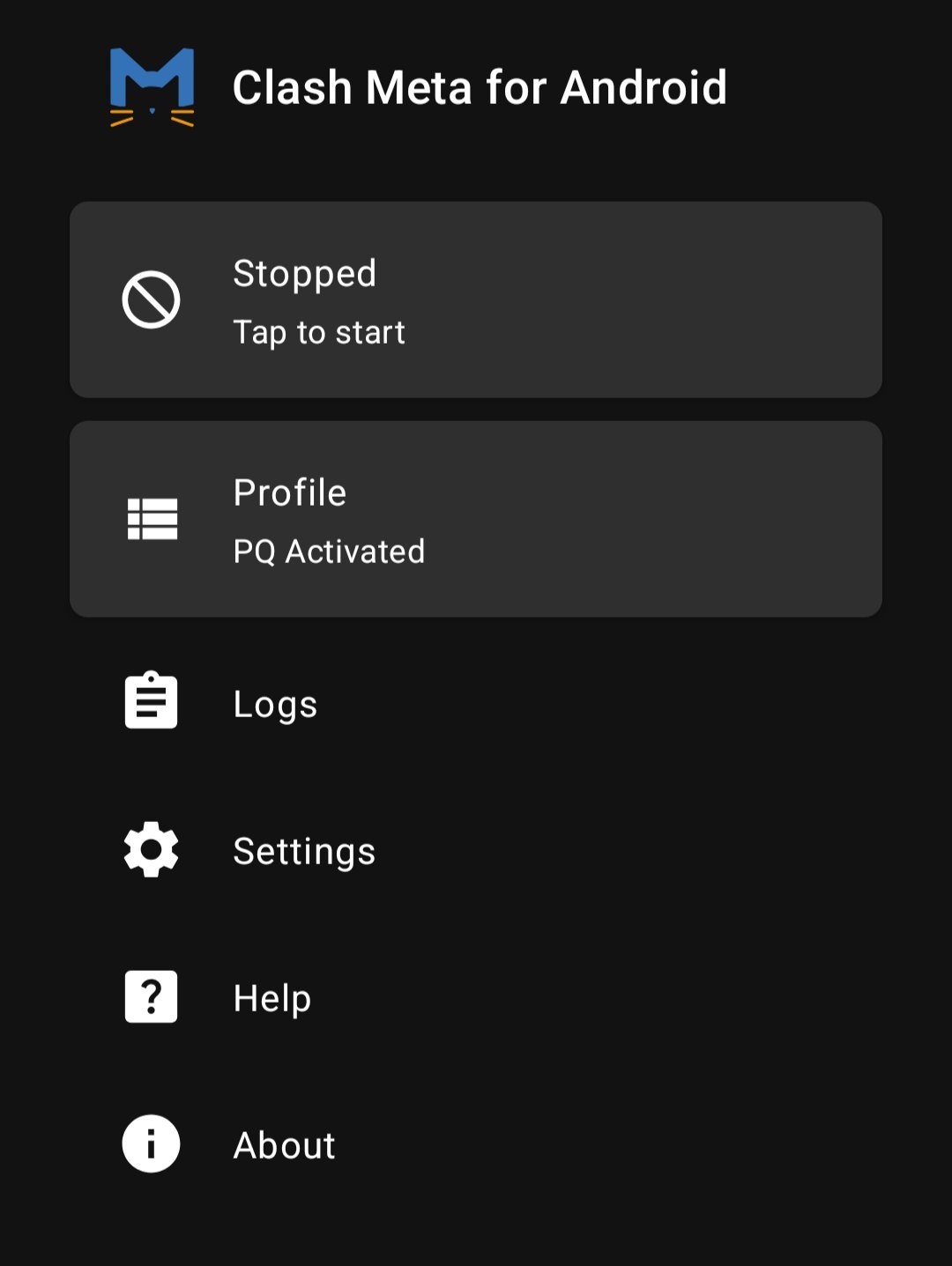 - Return to the main menu of the application and start the VPN by pressing the first button