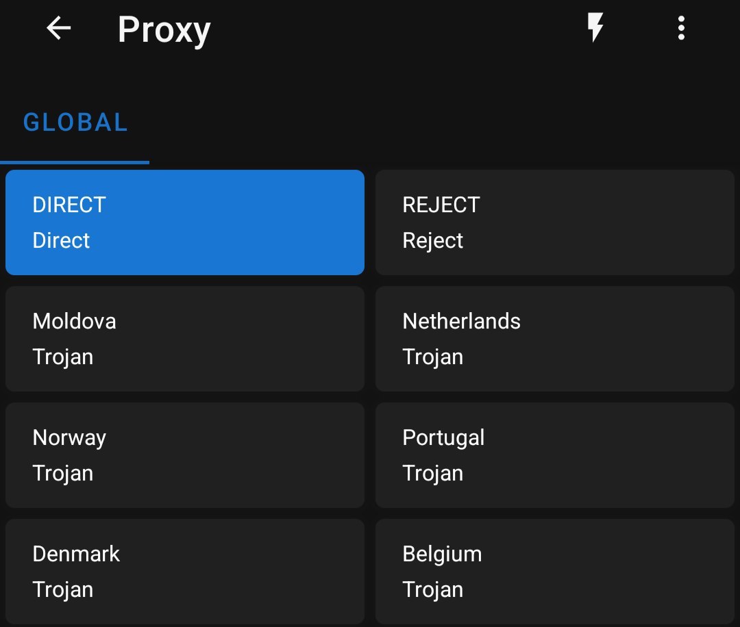 DIRECT - a policy where traffic is sent directly, bypassing the VPN server.