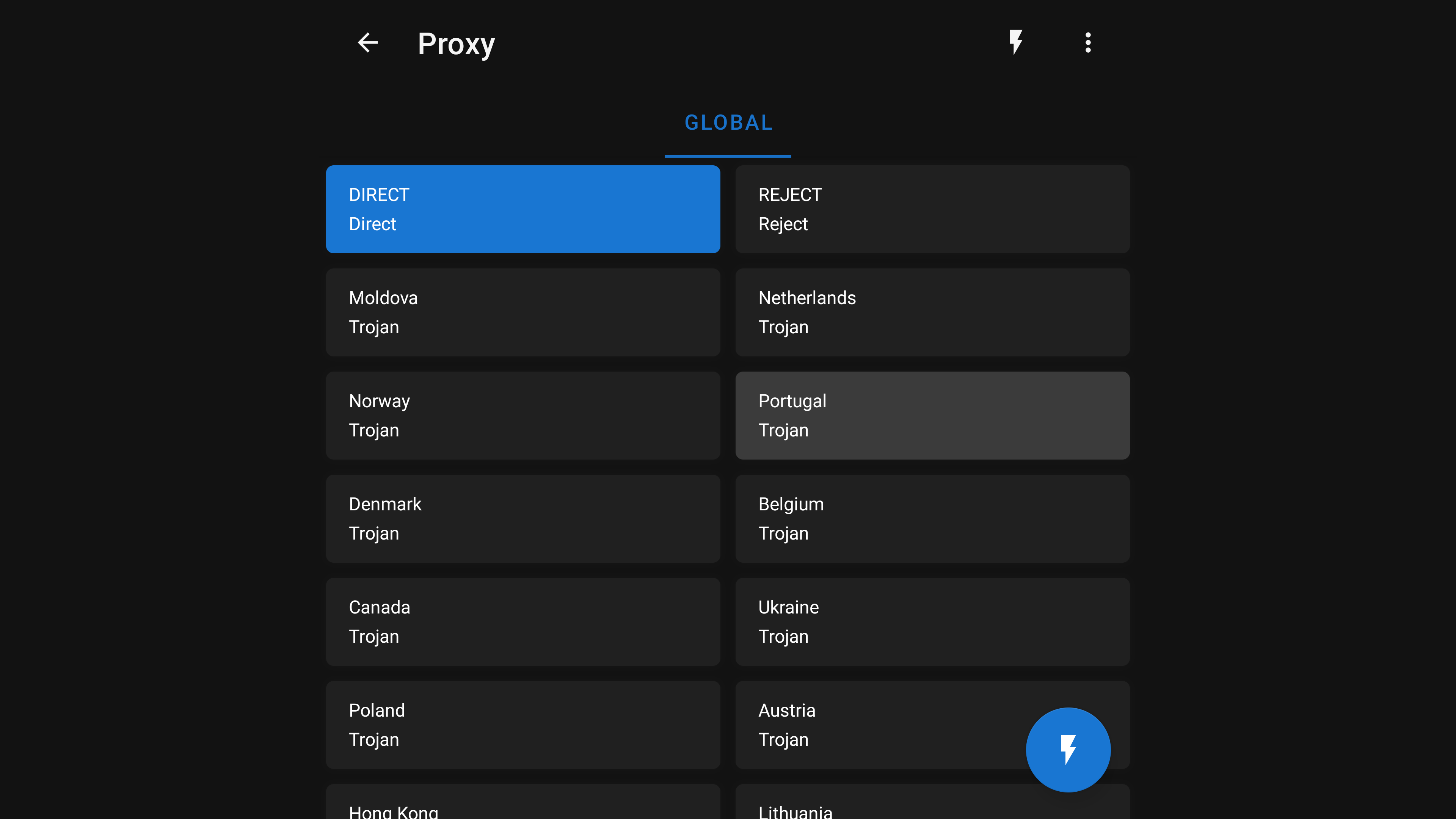 DIRECT - a policy where traffic is sent directly, bypassing the VPN server.