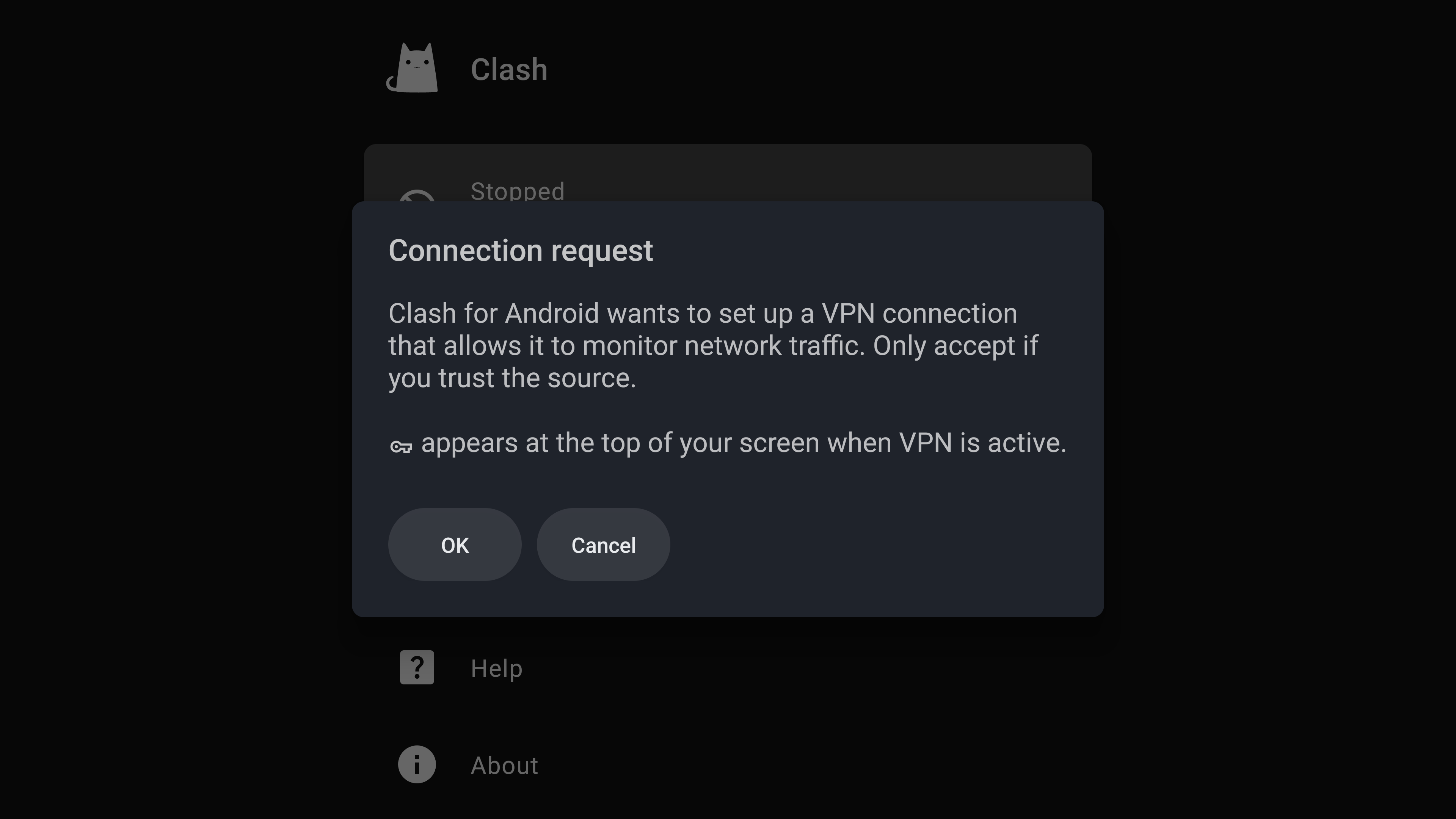 When connecting for the first time, you will need to grant permission to establish a VPN connection in the system.