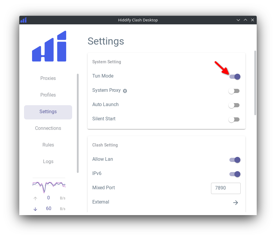 Hiddify Clash Desktop application settings