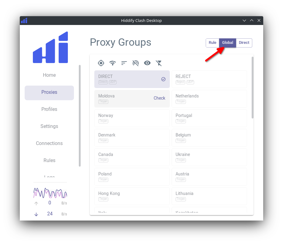 Proxies. EnableGlobalrouting mode.